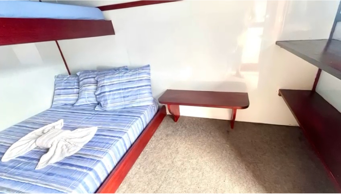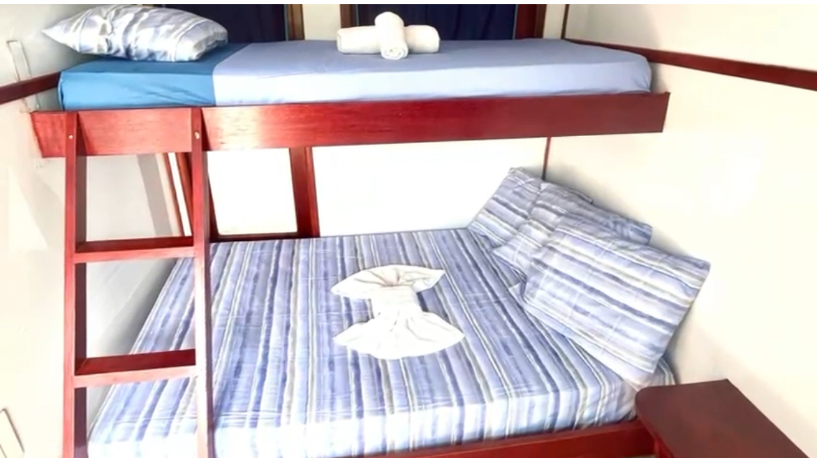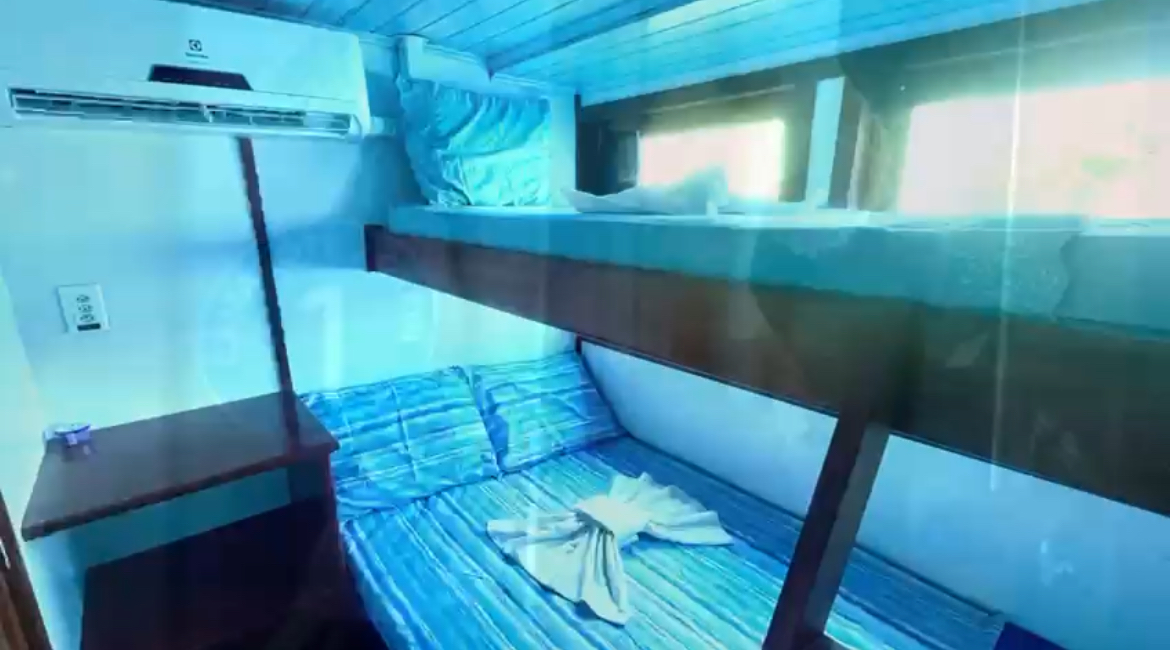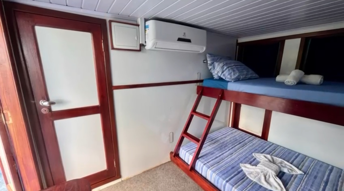 Com um total de 14 suítes, o Lady Larissa oferece opções variadas de camas, possibilitando a acomodação de até 42 passageiros. As suítes são distribuídas e configuradas para atender tanto grupos quanto famílias, garantindo flexibilidade na hospedagem.